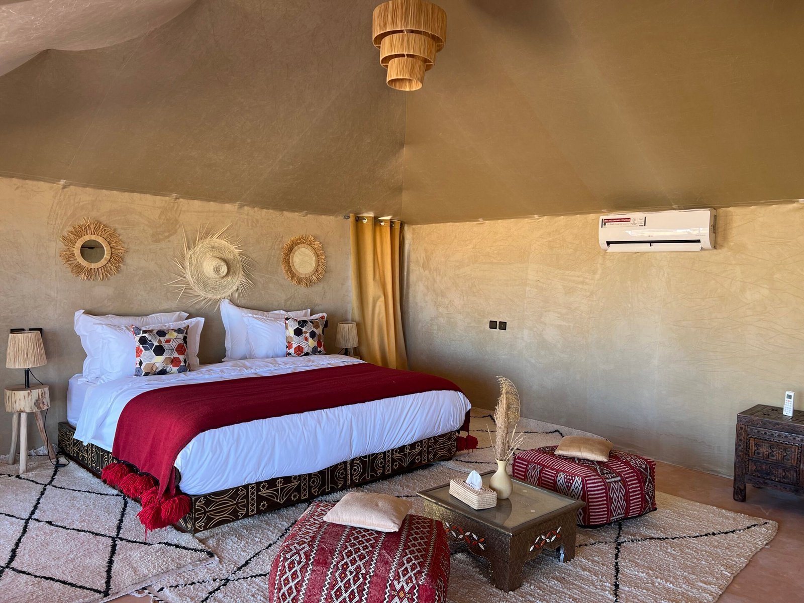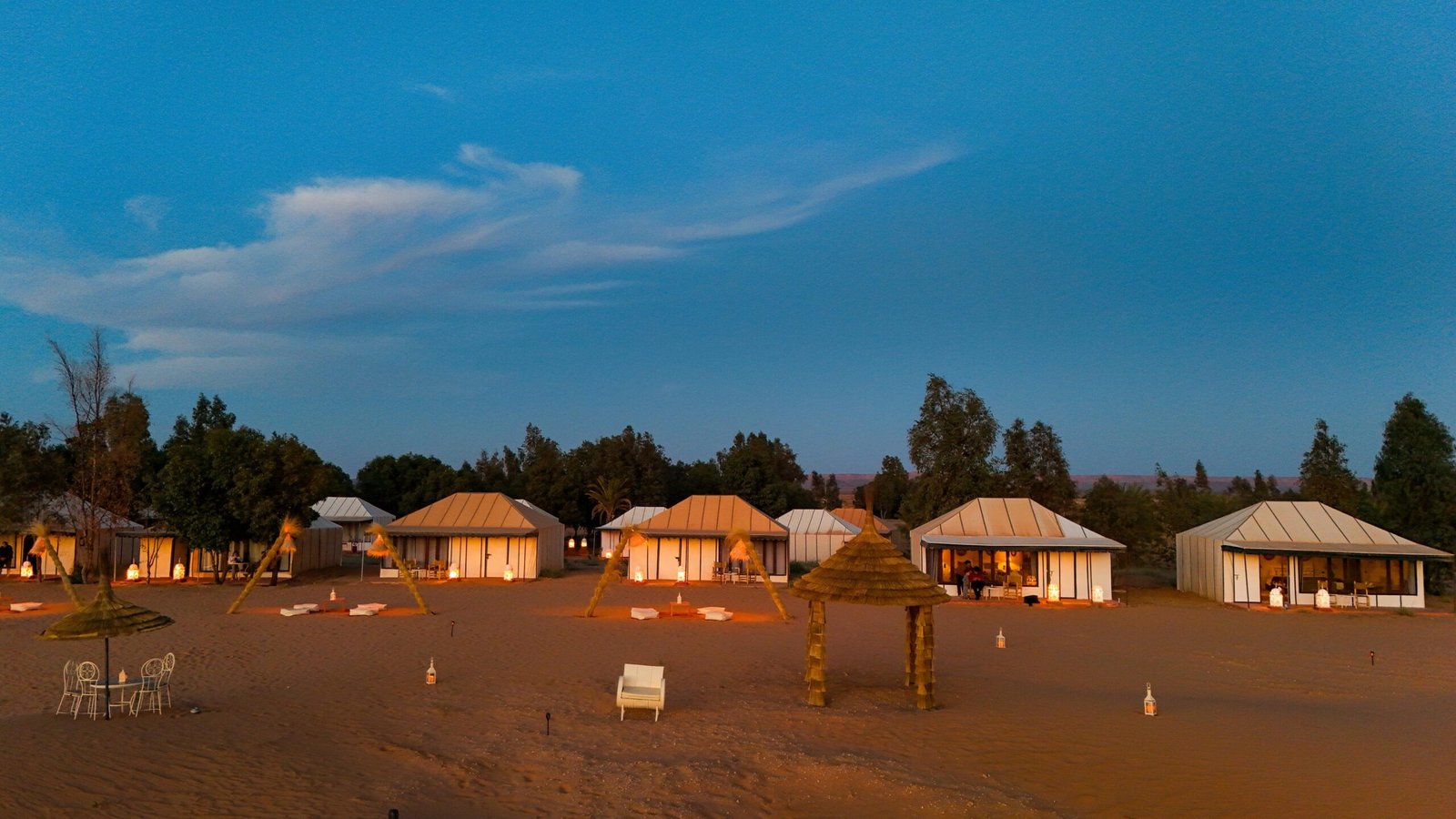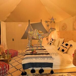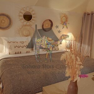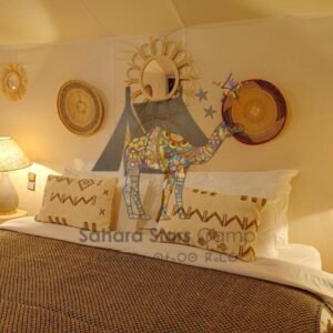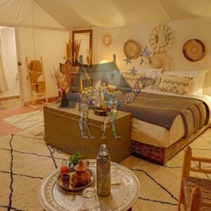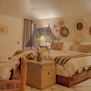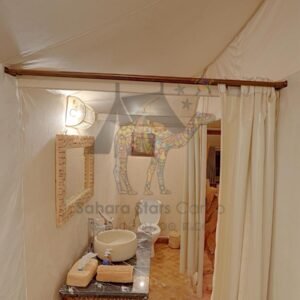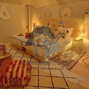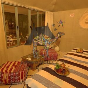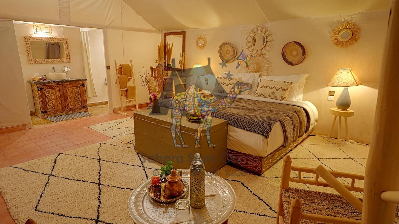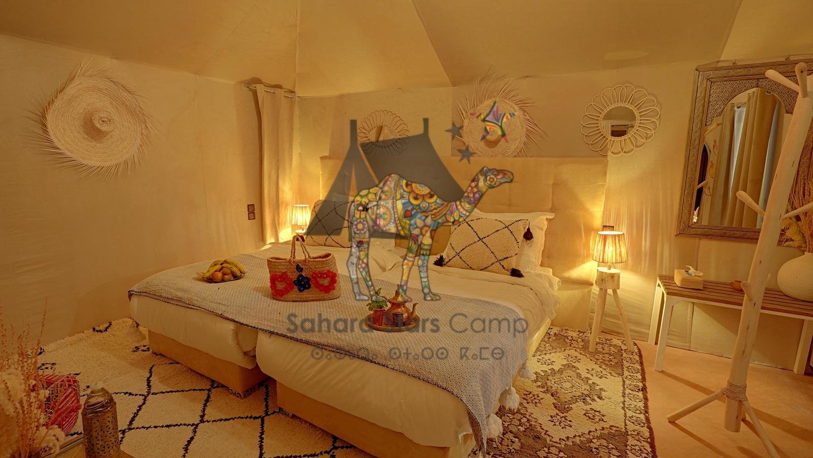 Our luxury luxury desert camp in Morocco that is based in Merzouga puts at your service a wide selection of luxury, spacious and well-equipped tents answering the need for all categories. Our Merzouga luxury desert camp consists of 16 luxury tents, 48 bed, and are all furnished with elegance while respecting the Moroccan authentic taste.