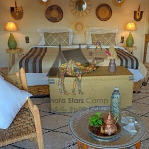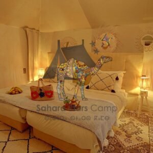 The camp has a large tent restaurant where you can taste the Moroccan culinary specialties. The Sahara Stars Camp also has a traditional Berber tent where you can enjoy a unique moment.